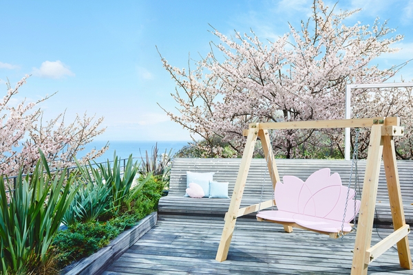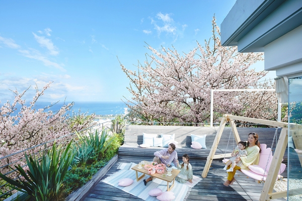 【リゾナーレ熱海】客室の広いテラスで目の前に広がる絶景を楽しめる宿泊プラン 「海と桜のお花見ステイ」販売 ~座面が桜の形のブランコに乗ってお花見を堪能!~ 期間:2023年3月20日~4月5日