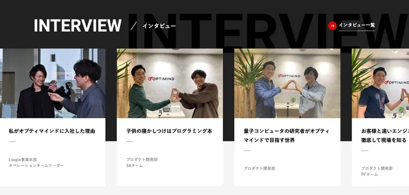 ・インタビュー記事や、社員の書いたブログ記事のコンテツを追加するなど、より「オプティマインドで働く」ことがイメージしやすいページになりました。