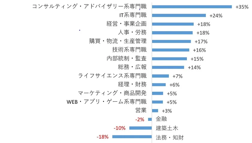 ●建築・土木系専門職:18%減、法務・知財関連職:10%減