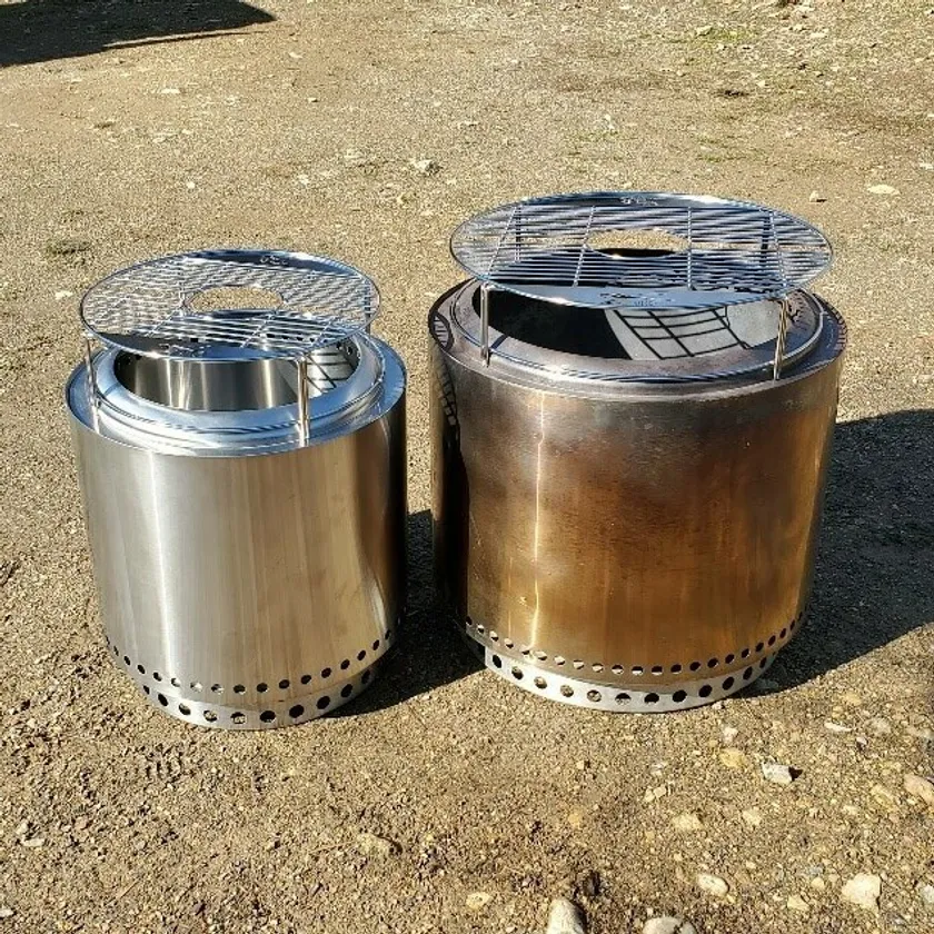 製品はすべてステンレス製で、水や汚れに強く円筒型焚火台の強力な炎にも耐えられる設計です。また製品をボンファイヤーの内部に収納できる(忍ばせる)形状となっており収納性にも優れ効率的に持ち運びをすることができます。