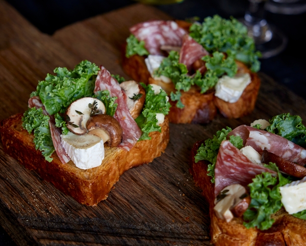 バターたっぷりのブリオッシュをクロワッサン生地で包んだ、当店の代名詞とも言えるヴィエノワズリ。焦がしバターを使い、卵に負けないしっかりとしたバターの香りを表現しました。クロワッサンのサクっとした食感とブリオッシュのシュワっと溶ける口どけを堪能できます。切り分けてそのままはもちろん、トーストして具材をのせたり、挟んだりと様々なアレンジをお楽しみいただけます。エシレでは季節ごとにオリジナル レシピを紹介しています。