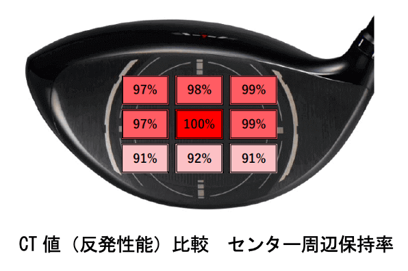 フェースインコアグルーブを楕円化し、フェースセンターのたわみ復元効果をフェース全周に均一化しました。
