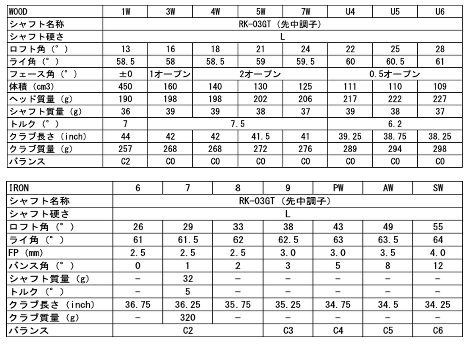 シャフト/ RK−03GTシャフト:カーボン(2G-Namd Flex Force)