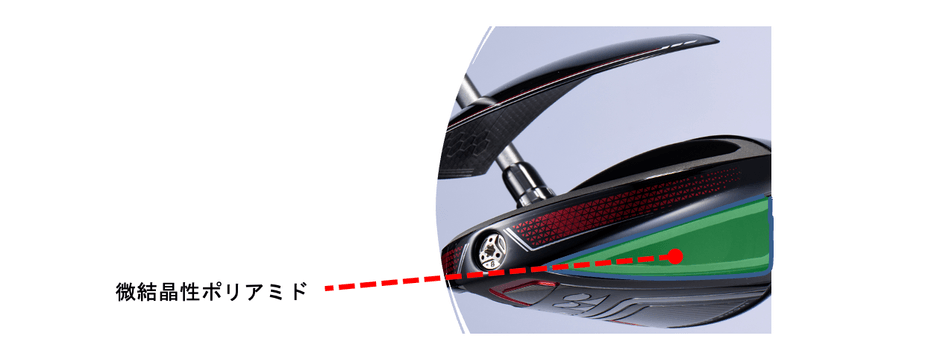 また、クラウン部には強靭なしなりと急激な復元力を生む新次元のカーボン素材「2G-Namd Flex Force※」を搭載することで、フェース上部の反発性が向上。サイドウォールとクラウン部の融合により今までにない“飛び”を追求しました。