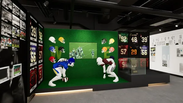 甲子園ボウルの歴史を、歴代出場校のヘルメットやユニフォーム展示、写真や映像で紹介。その年の甲子園ボウル出場校のユニフォームを着せたマネキン展示をするなど、甲子園ボウルの魅力が感じられるコーナーとなります。