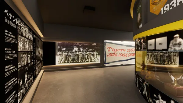 従来から人気の高い「VRコーナー」「ドラフト体験コーナー」のほか、球場リニューアル前のベンチを再現した「ダッグアウトレスト」を集約。阪神タイガースの選手が実際に使用した野球用具に触れる展示や、壁面を大きく使った甲子園にまつわる数字のクイズコーナーを新たに追加し、お子様にも楽しんでいただけるコーナーとなります。