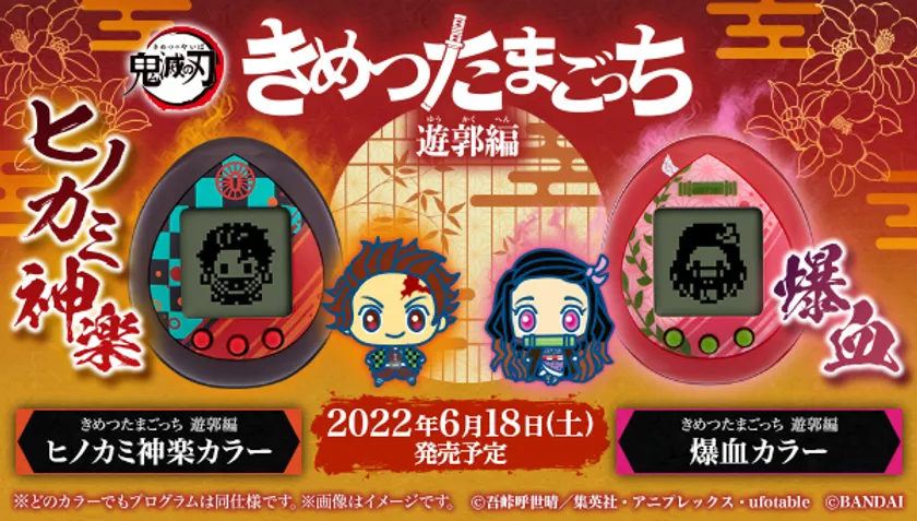 株式会社バンダイ ネットワークトイ企画部は、『テレビアニメ「鬼滅の刃」 遊郭編』の放送に合わせて、アニメに登場する「鬼殺隊」の隊士の育成が楽しめる人気シリーズ第4弾『きめつたまごっち 遊郭編』(全3種 うち1種は限定デザイン 各2,530円 税10%込)を、2022年6月18日(土)に発売いたします。