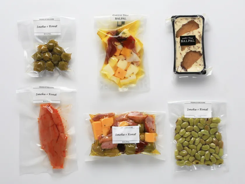 内容:スモークカチョカバロ&生ハム(150g)、チーズ&オリーブ(京鴨スモーク)(150g)、【アヒージョ】ガリシア産たこ&スモークモッツァレラ(150g)、合鴨スモーク パストラミ(170g)、スモークミックスナッツ(58g)、えだまめ燻製(58g)