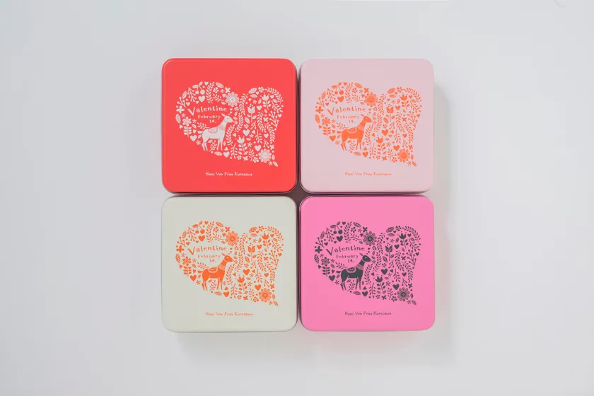 缶の色はレッド、ピンク、ホワイト、チェリーピンクの4色からお選びいただけます。