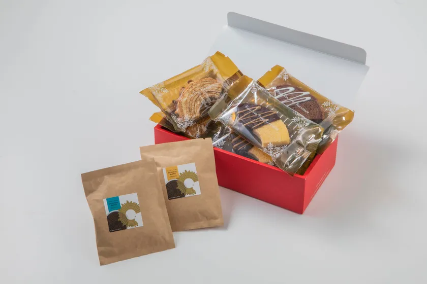 個包装のバウムクーヘンとドリップパックがセットになった、バレンタインギフトセット 2022