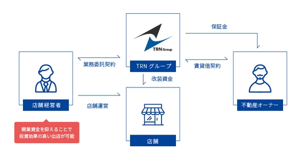 店舗流通ネットが店舗物件と内装を用意し、飲食店の出店を支援する独自の『ショップサポートシステム』です。