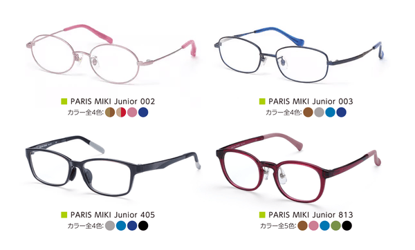 「PARIS MIKI Junior」は子どものメガネの選び方のポイントとなる、丈夫さと掛け心地を追求しました。また、お気に入りのメガネをお選びいただけるよう、サイズやデザインに豊富なバリエーションをご用意。お子さまのメガネ探しをお手伝いいたします!