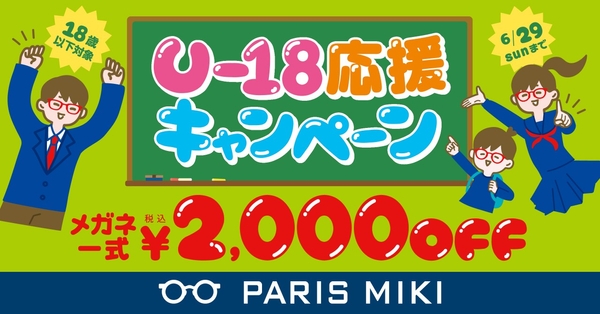 株式会社パリミキ(本社:東京都港区、代表取締役社長:恒吉裕司)は、2025年4月29日(火・祝)~ 6月29日(日)の期間、パリミキ『U-18応援キャンペーン』を全国のパリミキ店舗にて開催いたします。