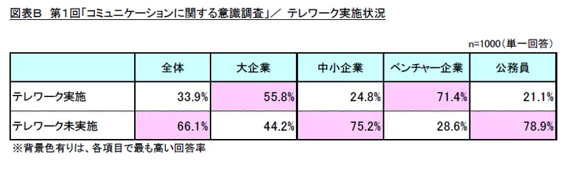 図表B 第1回「コミュニケーションに関する意識調査」/テレワーク実施状況