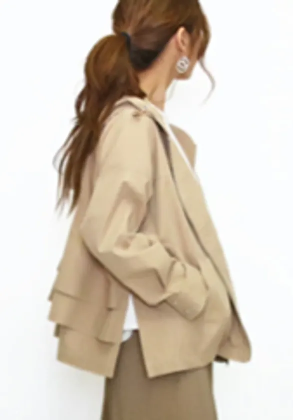 女性らしさを感じさせるバックフリルのシルエットが印象的なマウンテンパーカー。滑らかな肌触りのシャークスキン素材とゆったりとしたサイズ感が、中にざっくりニットを着ても軽やかに羽織ることができます。今期らしいサイドスリットデザインで、カジュアルなイメージのマウンテンパーカーが抜け感のあるお洒落アウターになり、コーデの幅が広がります。