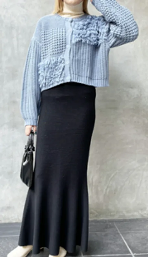 ショート丈のバランスが今年らしい、編み地切り替えのニットカーディガン。部分的に切り替えたループ編みが目を引き、存在感たっぷりなアイテムです。ハイウエストのボトムスやナローシルエットのマーメイドスカート等との相性の良さは、ショート丈ならでは。前のボタンを留めてロンTやブラウスとレイヤードしたコーデも、こなれ感があっておススメのスタイリングです。程よくゆるっとしたサイズ感が可愛く、春を先取りできそうなニュアンスカラーの色展開も魅力です。