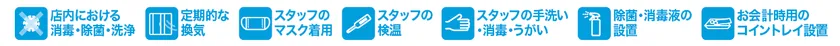 本フェアでは、お客様が安心してお食事をお楽しみ頂けるように、参加各店舗において以下対策をはじめとする新型コロナウイルス対策を徹底し、感染拡大防止に努めて参ります。