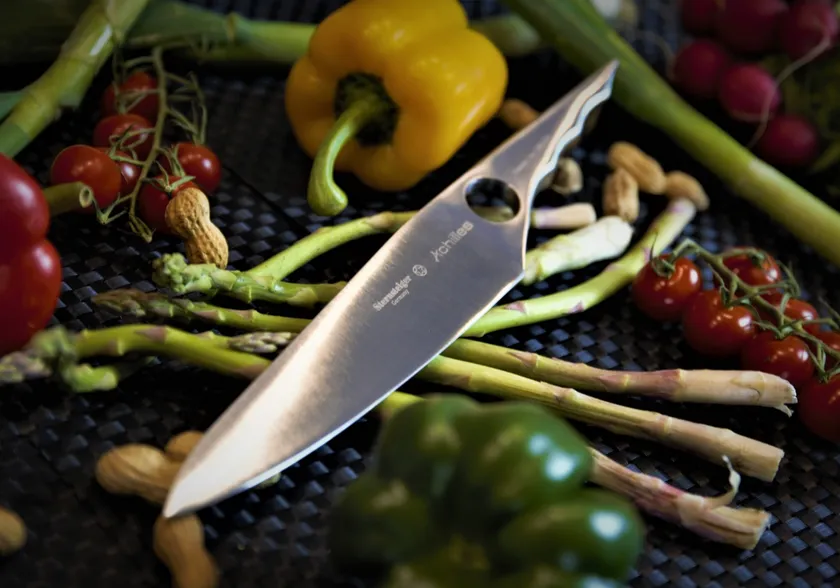 *日本初上陸のドイツでジャーマンデザインアワードを受賞した包丁「Sternsteiger Achilles アキレス」。