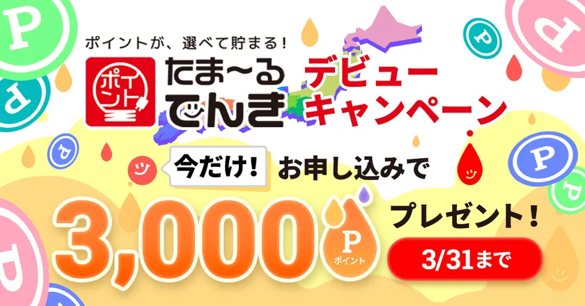 たま~るでんきデビューキャンペーン実施中!新規申し込みでCNポイント3,000円分プレゼント!