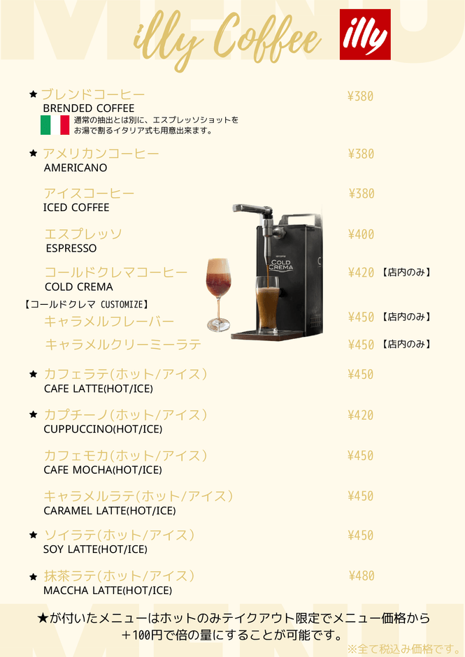 東海エリアでは珍しい『illyコーヒー』を出す店です!!是非一度お試しあれ!