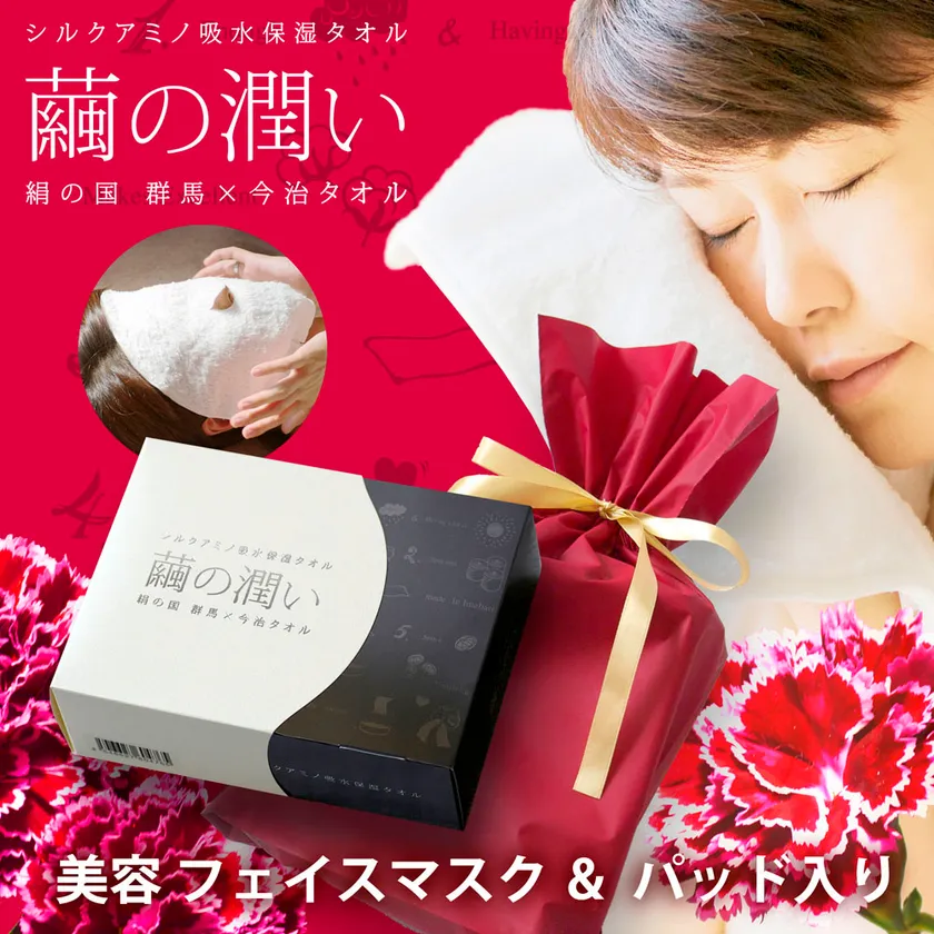 絹の国、群馬県富岡と、タオル産地愛媛県今治で、互いに卓越した技術を用い、きめ細やかな肌のお手入れに、より喜ばれるタオルを製作しようとの考えから「繭の潤いタオル」は生まれました。