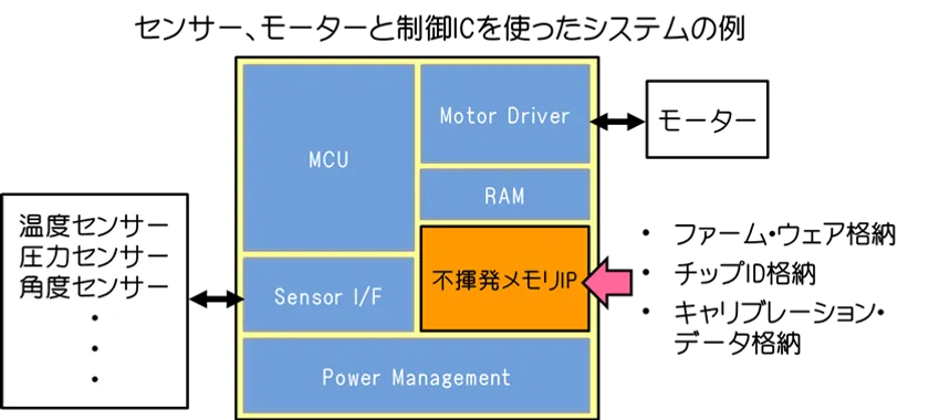 今回開発に成功したIPは、大手ファウンドリーの0.18um Mixed-Signal 1.8V/5Vプロセス、および0.18um BCD(Bipolar-CMOS-DMOS)プロセスという2系統の製造プロセスを使った製品に、一切プロセスを追加することなく適用が可能であり、いずれも車載や産業用途向けに広く使われているプロセス技術です。千回以上の書き換えが可能なため、頻繁にアップデートが必要となるプログラム格納用途としても使い勝手の良いものとなっています。今回は、最大32キロバイト容量のメモリIPにて信頼性試験を完了していますが、今後はさらに製品ラインナップを拡張する予定です。