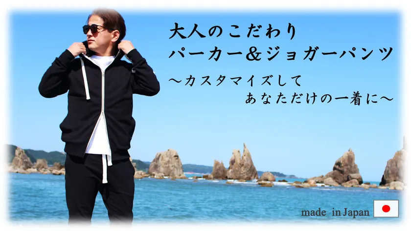 自社工場の雇用を守る「大人のこだわりパーカー&ジョガーパンツ」 Makuakeストアにて2月14日より発売! ~付属パーツをカスタマイズしてあなただけの一着に~