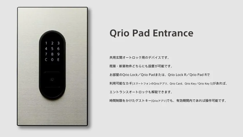 住宅設備用ビルトインタイプのスマートロック『Qrio Lock R』、 テンキー付カードリーダー『Qrio Pad R』も同時に提供開始