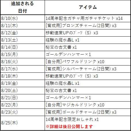 2022年8月10日(水)メンテナンス後~2022年8月21日(日) 23:59まで