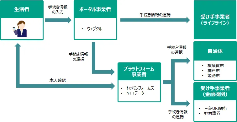 なお本実証は、上記のデジタル庁の取り組みと連携しつつ、横須賀市、神戸市、姫路市、株式会社三菱UFJ銀行、野村證券株式会社、株式会社ウェブクルー、株式会社NTTデータの官民7者の協力のもとで実施しています。