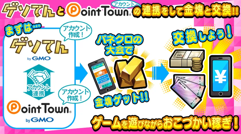 大会報酬としてゲットしたその『金塊』は、外部のポイントサイトのポイントに交換できるという画期的なシステムをスマートフォンアプリとしては初めて『パネクロ』が実現!