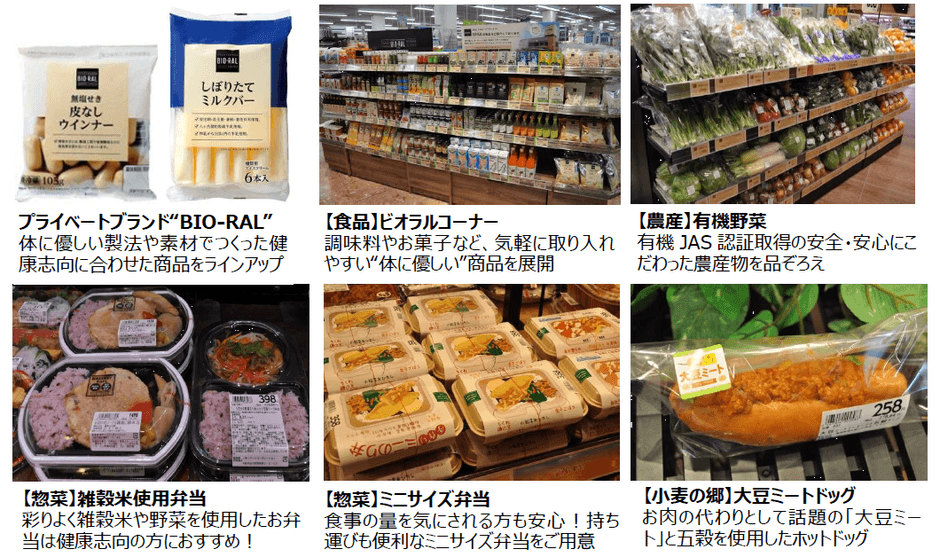 近年の健康志向の高まりに加えて、在宅時間の長期化などで食事を見直される方が増えていることから、”体に優しい”製法や素材でつくられた、安全・安心な商品を種類豊富に品ぞろえいたします。