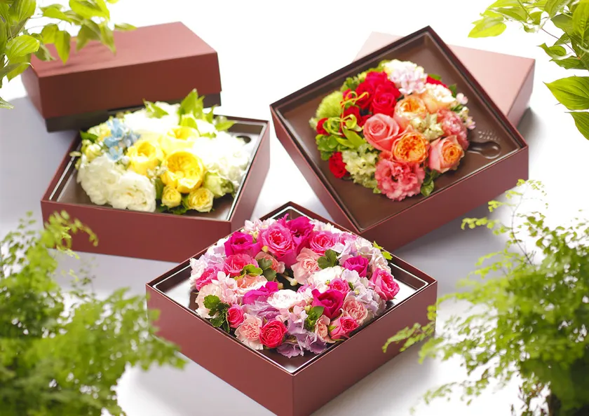 箱に入ったボックスタイプやオルゴールとセットになったタイプ、ボトルブーケなど、容器のバリエーションも豊富です。