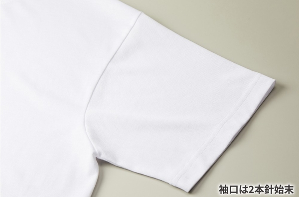5.3オンスのしっかりした生地感は、透けにくく、一枚でもインナーでも活躍。T/C天竺ならではのソフトな肌触りと耐久性で、洗濯を重ねても型崩れしにくいのが魅力です。