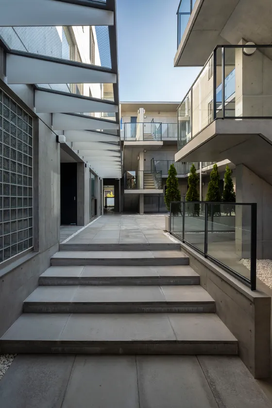 建物は、ロの字型の設計とすることにより角住戸比率が高く、外気に触れる壁面を増やすとともに、中庭や吹抜けを通じて空気の流れをつくり出すことで居住性と開放性を高める配棟計画に。一般的なマンションではあまり見られない、ゆとりある設計としました。