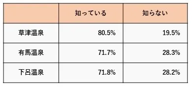 下呂温泉と有馬温泉がどの都道府県にあるか知っている割合はほとんど同じでした。