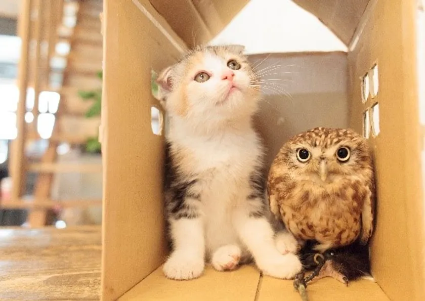 大阪・中崎町のカフェ「HUKULOU COFFEE」の看板フクロウ“フク"と子猫の“マリモ"を、カメラマンとして初めて撮り下ろした作品。丸いフォルムのフクとマリモがふれあう姿に萌え、種を越えて育む友情に心癒される。