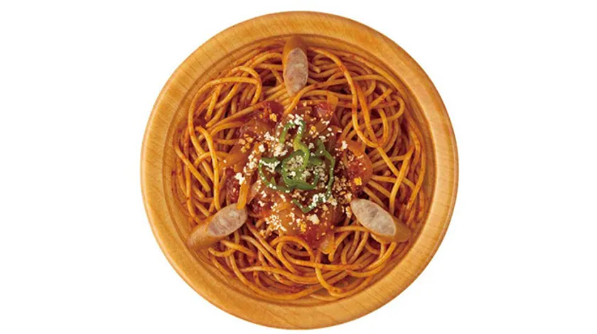 トマト風味のナポリタンソースで和え、玉ねぎ、ピーマン、あらびきウインナーをトッピング。昔懐かしい味のナポリタンです。