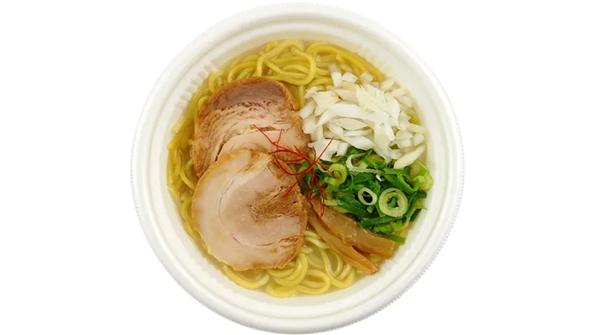 札幌のラーメン有銘店である「飛燕」監修の人気メニューを再現。こだわりの魚介鶏塩白湯スープに、麺はもちもちした多加水麺を使用。具材はチャーシューとメンマ、玉ねぎ、青ネギとシンプルにトッピング。