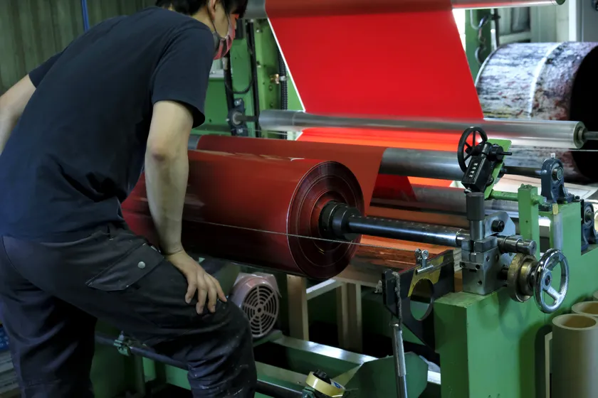 当社は、自動車部品に代表される工業製品の加飾で使用される“顔料箔”を製造しております。