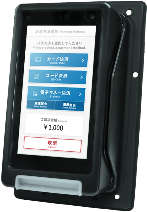 「salo-01」は、クレジットカード・電子マネー・コード決済をオールインワンで提供する組込型マルチ決済端末です。上位機器への組込みに特化しており、あらゆる自動精算機や無人販売機、セルフレジと連携することが可能です。接続インターフェイスはUSB、RS232C、Wi-Fi、Ethernetをサポートし、シリアル通信だけでなく、ネットワーク通信にも対応。上位機器(POS)との連携にあたっては、各種開発用SDKを豊富に用意しているため、シンプルなコマンドで簡単に開発することが可能です。また、高額でハードルの高い「電子マネー検定」を簡易化し、書類による「上位機器登録」のみで電子マネー決済に対応。導入ベンダー様の負担を大幅に削減し、導入までの期間短縮を実現しました。さらに、完全な無人環境下でも安全に運用できる端末として、端末監視機能や防塵防水性能IP65を搭載。屋内のほか屋外でも利用でき、業種を問わず幅広いシーンで活躍する汎用性の高い決済端末です。タッチ決済(非接触IC決済)にも対応しており、タッチ決済対応マークの記載されたクレジットカードであれば、カードを挿入する必要がなく、タッチするだけで支払いが完了。利用者様も、事業者様も、安心・安全に利用できるマルチ決済端末です。