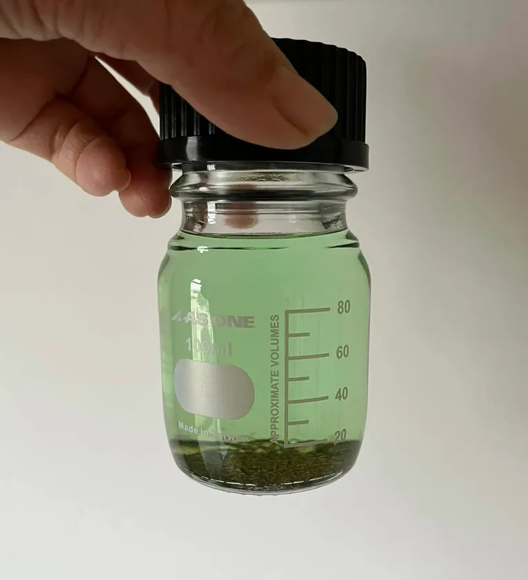 (3)今回の原材料のスギとヒノキは森のお手入れのために間伐した樹から取ります。ただの間伐ではなく、列状間伐という間伐方法のため、しっかりと強く健康に育った樹を一本一本厳選して手斧で収穫し蒸留に使います。そのため、機械で大量に収穫したものとは全く違う芳香蒸留水となっています。