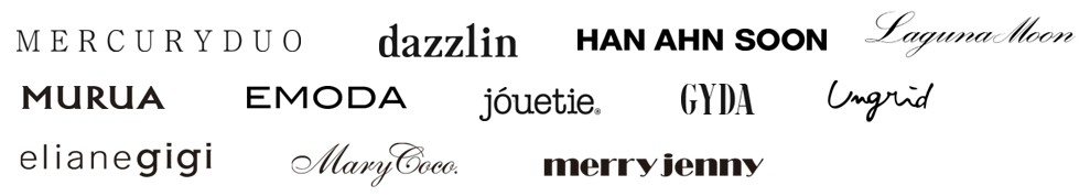 MERCURYDUO、dazzlin、HAN AHN SOON、LagunaMoon、MURUA、EMODA、jouetie、GYDA、Ungrid、elianegigi、Mary Coco.、merry jenny