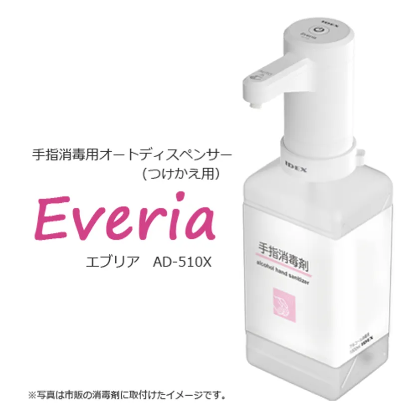IDEX株式会社(所在地:神奈川県横浜市中区)は、手押しの手指消毒剤にあるノズル式ポンプ部につけかえるだけで、簡単に非接触で消毒ができる「手指消毒用オートディスペンサー エブリア(型番:AD-510X)」を2022年2月17日(木)に発売いたします。