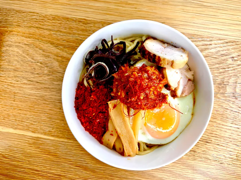トッピングは熊本県産を中心とした国産の白葱に、イタリア・シチリアの海塩、同じくシチリアのオーガニックレモン、フィリピン産ココナッツから作られたオーガニックMCTオイルを原料として丁寧に手仕込みした“ネギ塩”のみ。