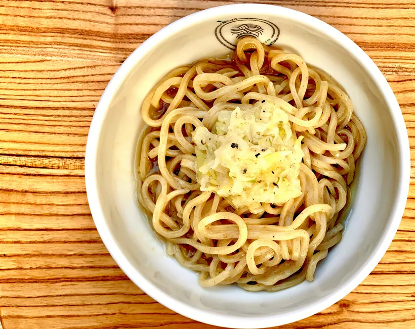 油そばと言えば、ガッツリ、濃い味、満腹が売り言葉とも言うべき食べ物の代表格です。そもそもお金のない大学生に向けて始められたメニューですので当然です。しかし、当店ではその真逆を行く一杯をご提供いたします。