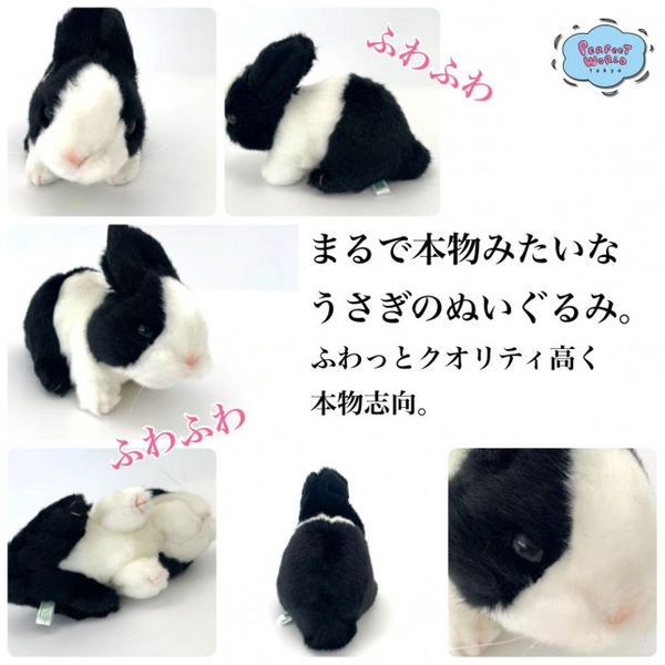 うさぎっていろんな種類がいますよね♪今回のぬいぐるみはブラックなうさぎ、ところどころにホワイトの毛が混ざっていてとても愛らしいんです。