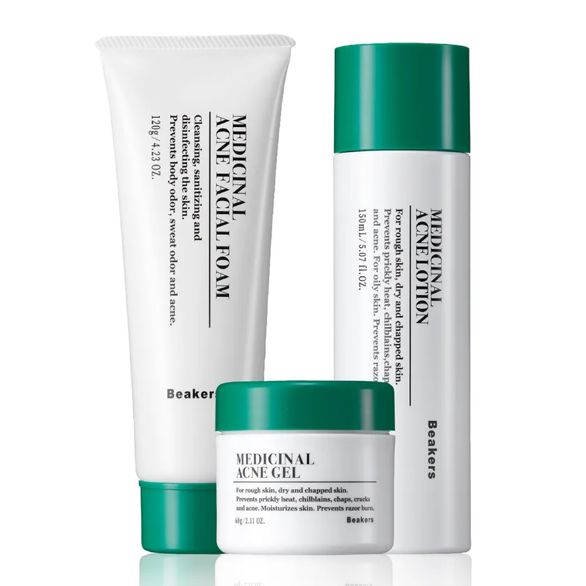 Beakers(ビーカーズ)薬用アクネシリーズはニキビ、肌荒れを繰り返す肌の原因に着目!〈洗う〉〈潤す〉〈整える〉の3ステップでニキビ、肌荒れのないつる肌を目指します。