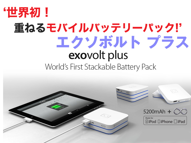 世界初、積み重ねて容量を無限に拡張するモバイルバッテリー 「エクソボルト プラス」発売!