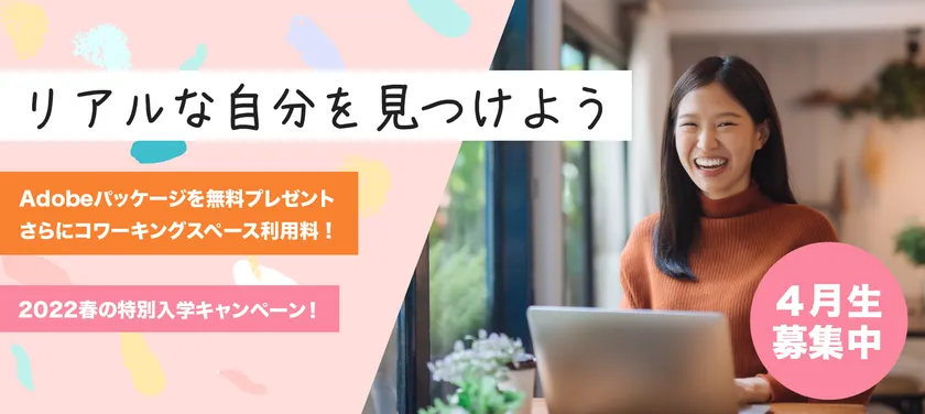 「リアルな自分を見つけよう!」をコンセプトにしている横浜では、これらを記念して、春の特別入学キャンペーンを実施します。カリキュラムや、Web業界、就職、起業などの相談をはじめ、現在の仕事や経験状況に応じてSTUDIOへの通い方、学習方法などに関するアドバイスが受けられる無料体験講座・相談、座談会なども随時開催します。まずはお気軽にご参加ください。